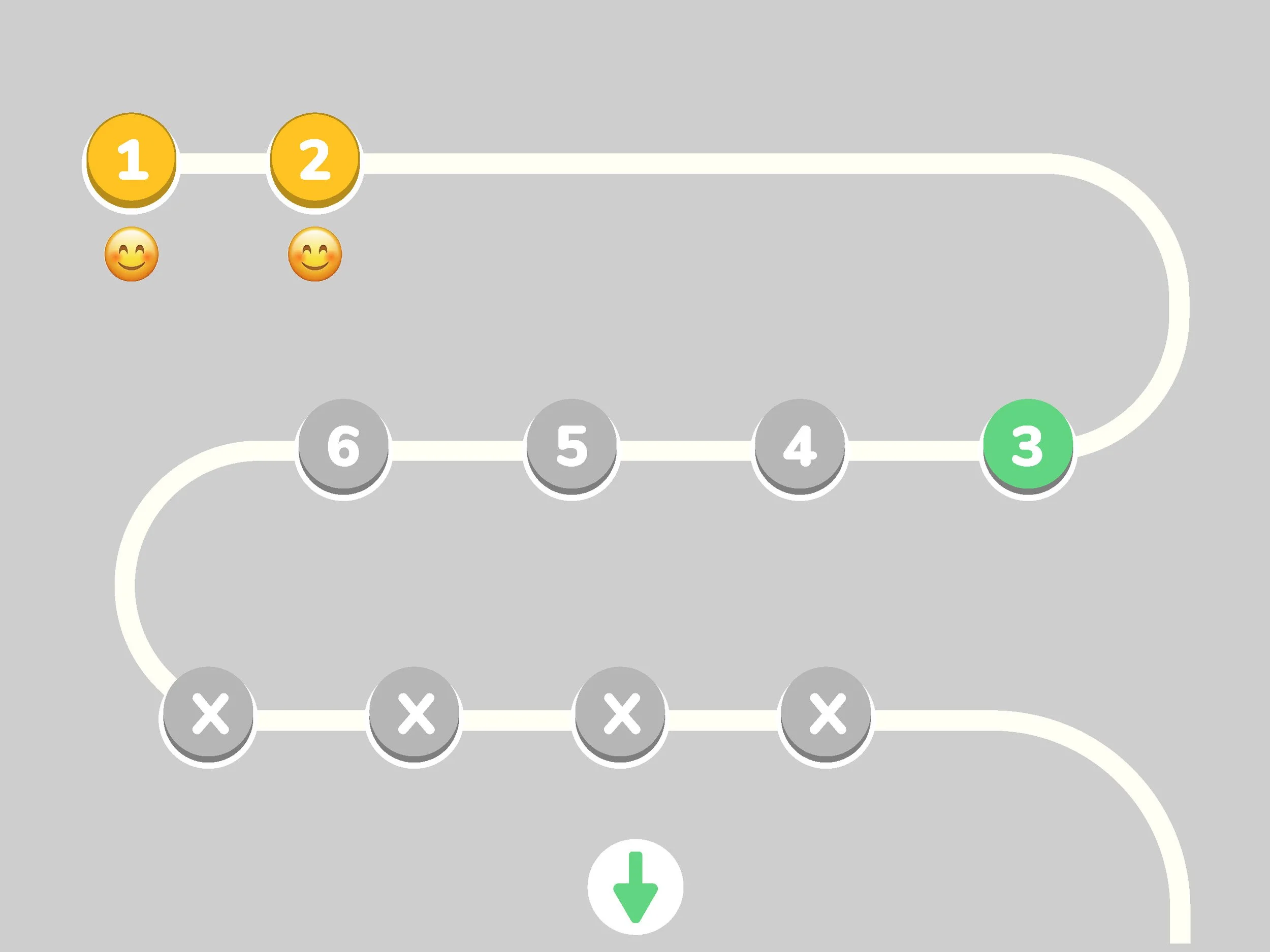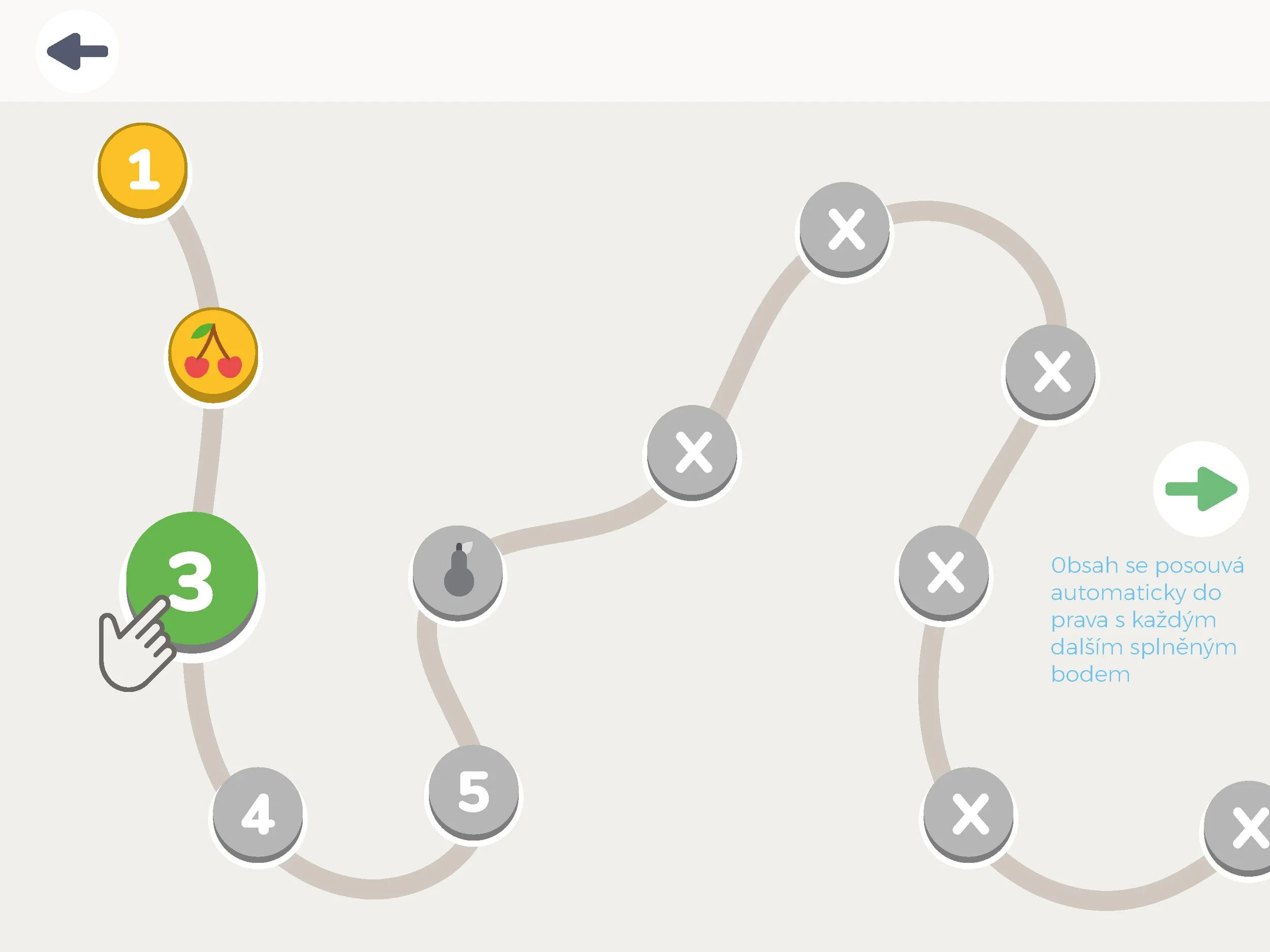 Cesta studenta úlohami. Aktuální úloha je odlišena pulzujícím animovaným prvkem, velikostí a barvou.